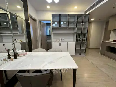 Fully furnished 2 bedrooms, 2 bathrooms condo for rent with a floorsize of 70 squaremeters, located on the 49th floor, at One 9 Five Asoke - Rama 9 building, in the popular Huai Khwang district near MRT Phra Ram 9 and near ARL Makkasan. Please contact us to schedule a viewing.