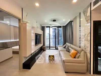 Fully furnished 2 bedrooms, 2 bathrooms condo for rent with a floorsize of 68 squaremeters, located on the 21st floor, at One 9 Five Asoke - Rama 9 building, in the popular Huai Khwang district near MRT Phra Ram 9 and near ARL Makkasan. Please contact us to schedule a viewing.