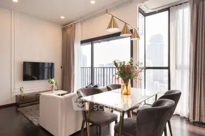 Fully furnished 2 bedrooms, 1 bathroom condo for rent with a floorsize of 50 squaremeters, located on the 24th floor, at Park Origin Thonglor building, in the popular Watthana district near BTS Thong Lor. Please contact us to schedule a viewing.