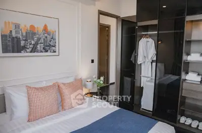 Fully furnished 2 bedrooms, 1 bathroom condo for rent with a floorsize of 45 squaremeters, located on the 28th floor, at Park Origin Thonglor building, in the popular Watthana district near BTS Thong Lor. Please contact us to schedule a viewing.