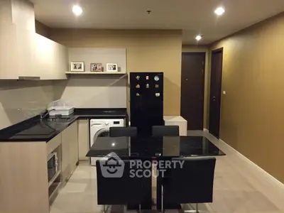Fully furnished 2 bedrooms, 2 bathrooms condo for rent with a floorsize of 61 squaremeters, located on the 14th floor, at Rhythm Sathorn building, in the popular Sathon district near BTS Saphan Taksin. Please contact us to schedule a viewing.