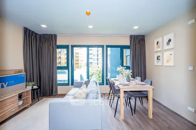 Fully furnished 2 bedrooms, 2 bathrooms condo for rent with a floorsize of 58 squaremeters, located on the 4th floor, at The Base Sukhumvit 50 building, in the popular Khlong Toei district near BTS On Nut. Please contact us to schedule a viewing.