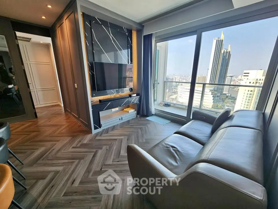 Fully furnished 2 bedrooms, 3 bathrooms condo for rent with a floorsize of 100 squaremeters, located on the 43rd floor, at The River Condominium building, in the popular Khlong San district near BTS Saphan Taksin. Please contact us to schedule a viewing.