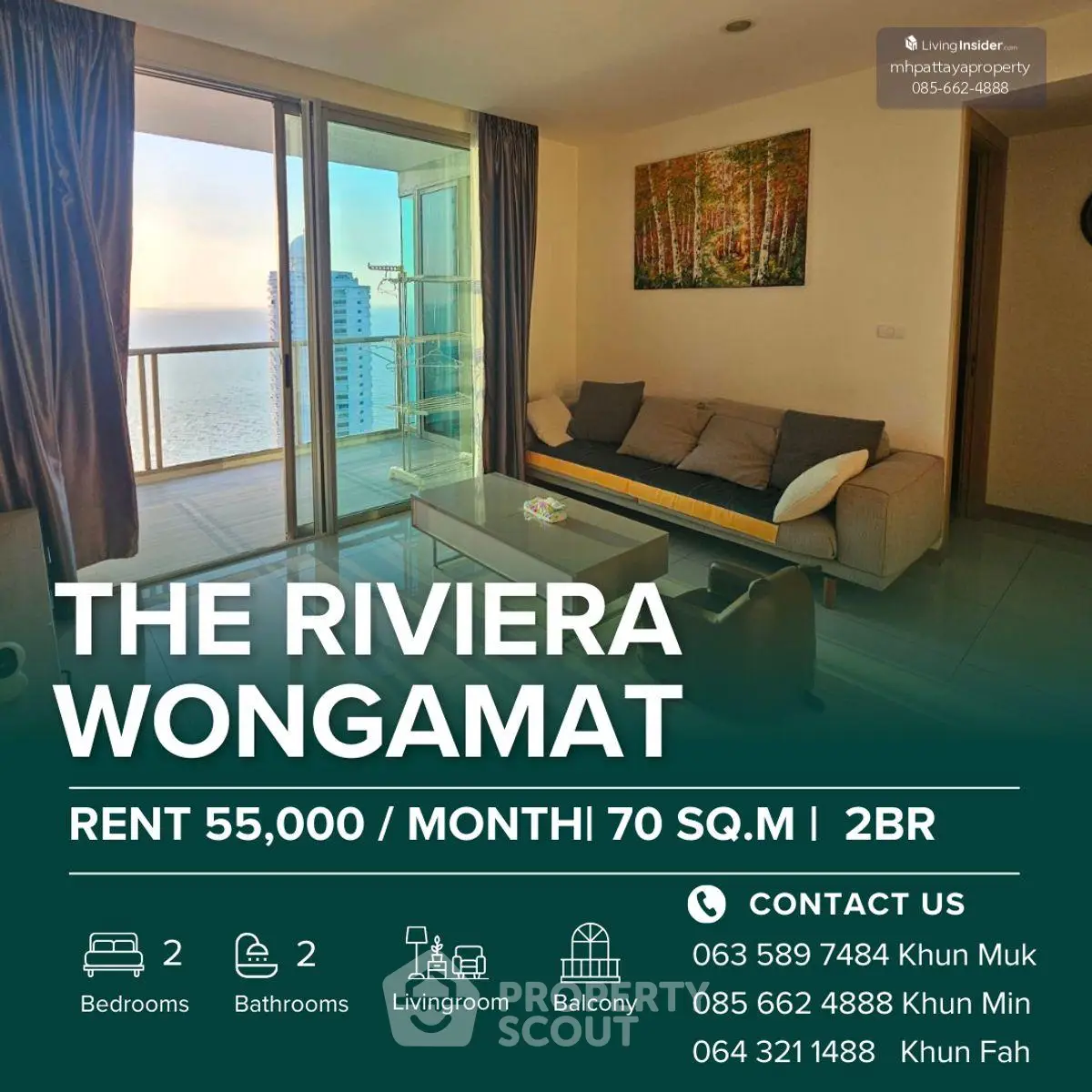2-BR Condo at The Riviera Wongamat close to Sanctuary of Truth