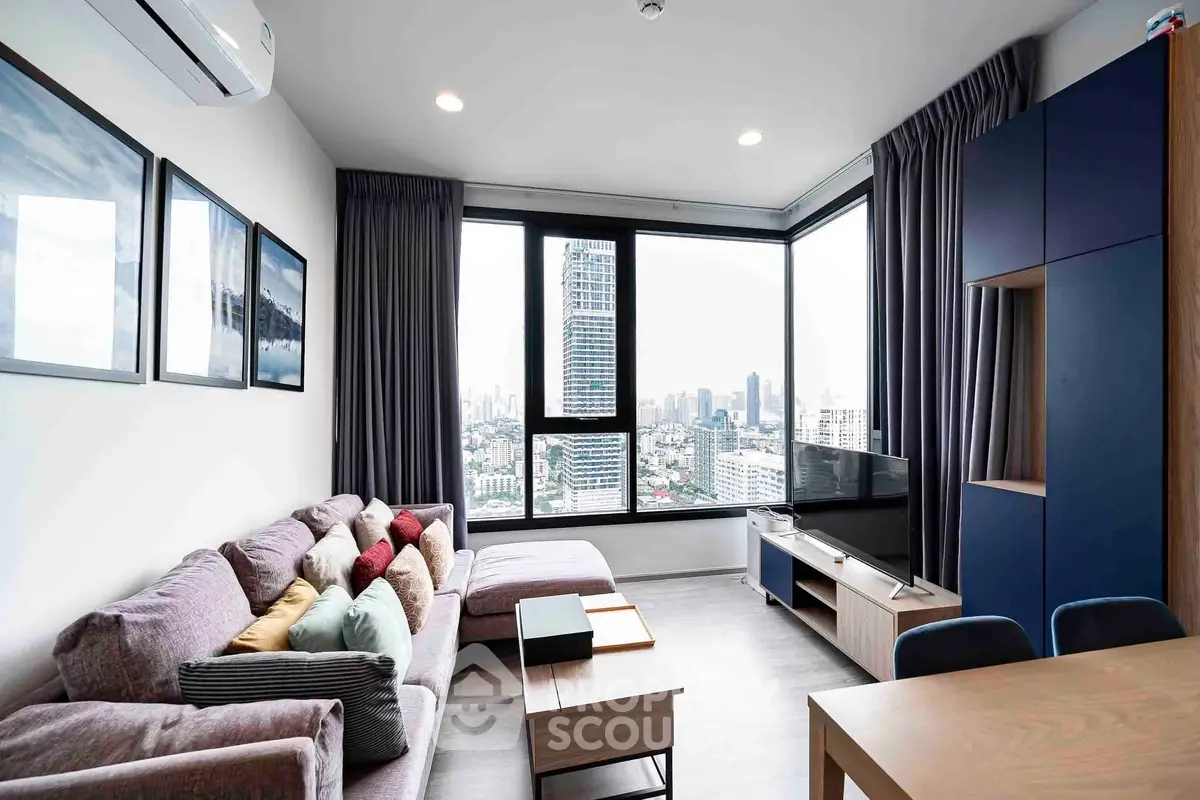 Fully furnished 2 bedrooms, 2 bathrooms condo for rent with a floorsize of 57 squaremeters, located on the 34th floor, at XT Ekkamai building, in the popular Watthana district near BTS Thong Lor. Please contact us to schedule a viewing.
