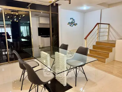 Fully furnished 2 bedrooms, 2 bathrooms townhouse for rent with a floorsize of 93.1 squaremeters, in the popular Phra Khanong district near BTS Bang Chak. Please contact us to schedule a viewing.