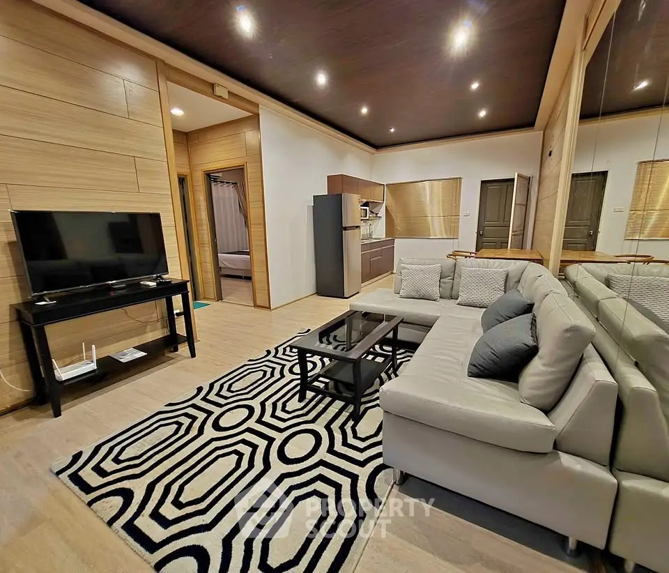 Fully furnished 2 bedrooms, 2 bathrooms villa for rent with a floorsize of 93.1 squaremeters, in the popular Bang Lamung district. Please contact us to schedule a viewing.