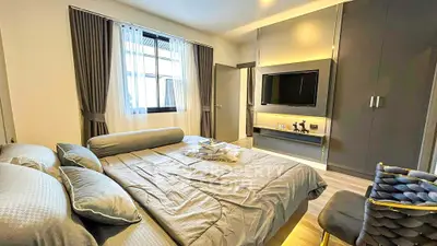 3 bedrooms, 4 bathrooms villa for sale with a floorsize of 262.7 squaremeters, in the popular Bang Lamung district. Please contact us to schedule a viewing.