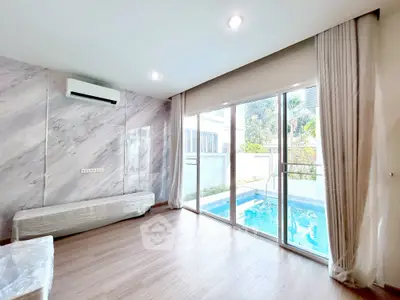 Fully furnished 3 bedrooms, 5 bathrooms villa for rent with a floorsize of 355.2 squaremeters, in the popular Watthana district near ARL Ramkhamhaeng. Please contact us to schedule a viewing.
