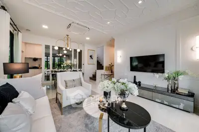 Fully furnished 4 bedrooms, 3 bathrooms house for sale with a floorsize of 205 squaremeters, in the popular Bang Kruai district. Please contact us to schedule a viewing.
