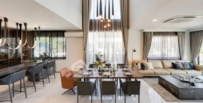 Homely pet friendly 4 bedrooms, 4 bathrooms house for sale with a floorsize of 247 squaremeters, at Chewarom New Ratchaphruek project, in the popular Mueang Pathum Thani district. Please contact us to schedule a viewing.