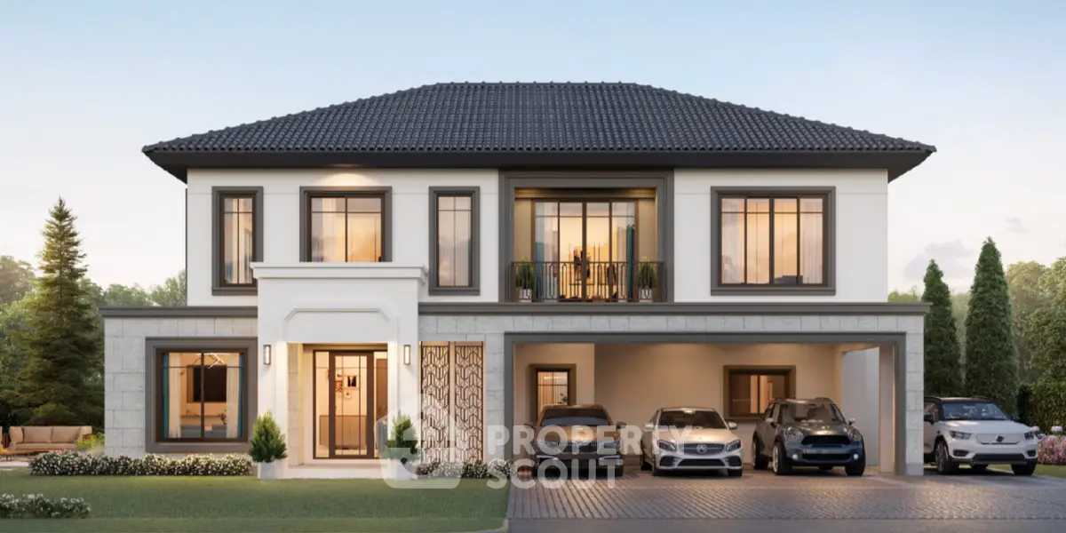 Fully furnished pet friendly 4 bedrooms, 5 bathrooms house for sale with a floorsize of 360 squaremeters, at Grand Britania Suksawat-Wongwaen project, in the popular Thung Khru district. Please contact us to schedule a viewing.