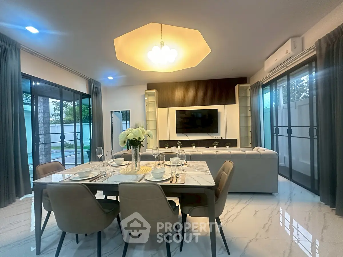 Fully furnished 4 bedrooms, 4 bathrooms villa for rent with a floorsize of 400 squaremeters, in the popular Bang Lamung district. Please contact us to schedule a viewing.