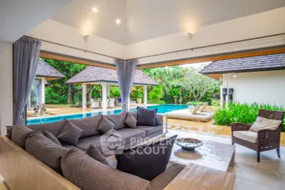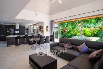 The living and dining areas open out to the pool and terraces and the use of fully-extendable folding doors seamlessly blends outdoor and indoor tropical living.