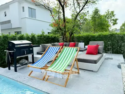 Fully furnished 4 bedrooms, 6 bathrooms villa for rent / sale with a floorsize of 315 squaremeters, in the popular Prawet district. Please contact us to schedule a viewing.