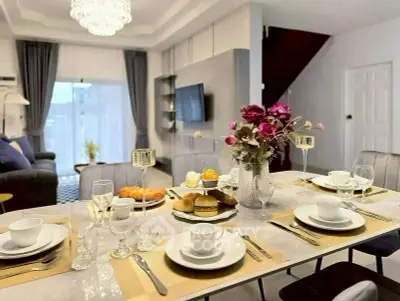 Fully furnished 5 bedrooms, 3 bathrooms house for rent with a floorsize of 410 squaremeters, in the popular Bang Lamung district. Please contact us to schedule a viewing.