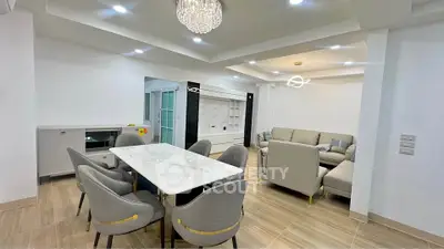 Fully furnished pet friendly 5 bedrooms, 5 bathrooms townhouse for rent with a floorsize of 494.5 squaremeters, in the popular Huai Khwang district near MRT Huai Khwang. Please contact us to schedule a viewing.