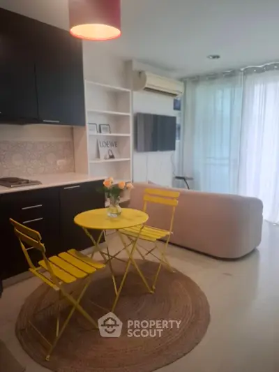 Fully furnished studio, 1 bathroom condo for rent with a floorsize of 35 squaremeters, located on the 6th floor, at D 65 Condominium building, in the popular Watthana district near BTS Ekkamai. Please contact us to schedule a viewing.