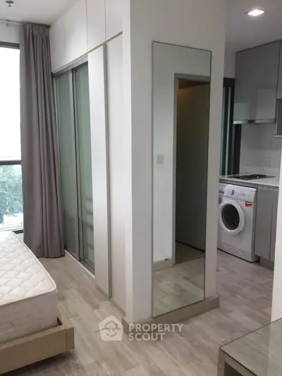 Fully furnished studio, 1 bathroom condo for rent with a floorsize of 21 squaremeters, at Ideo Mobi Rama 9 building, in the popular Huai Khwang district near MRT Phra Ram 9 and near ARL Makkasan. Please contact us to schedule a viewing.
