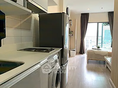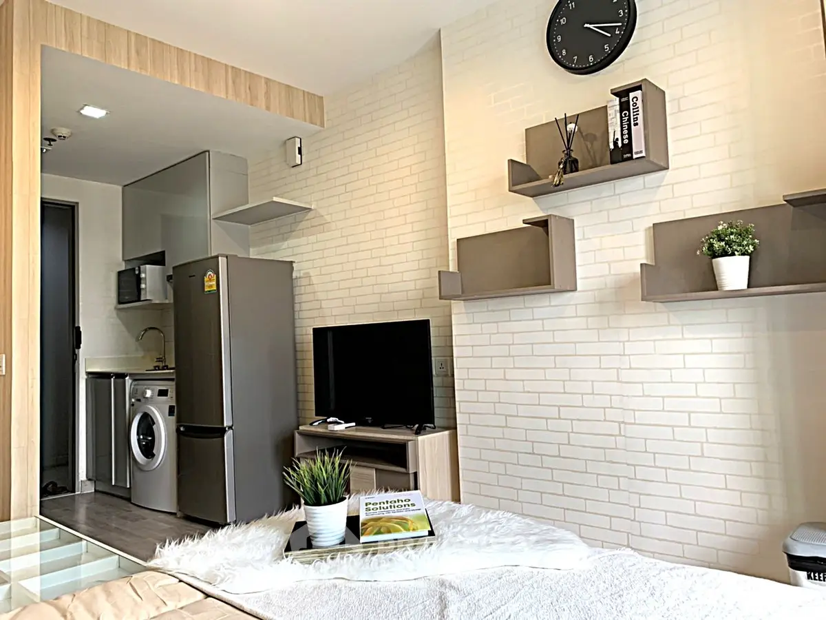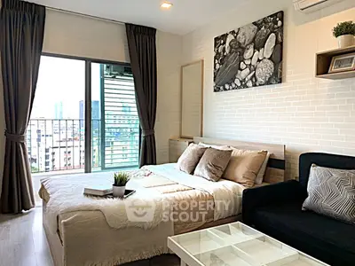 Fully furnished studio, 1 bathroom condo for rent with a floorsize of 22 squaremeters, located on the 9th floor, at Ideo Mobi Sukhumvit 81 building, in the popular Phra Khanong district near BTS On Nut. Please contact us to schedule a viewing.