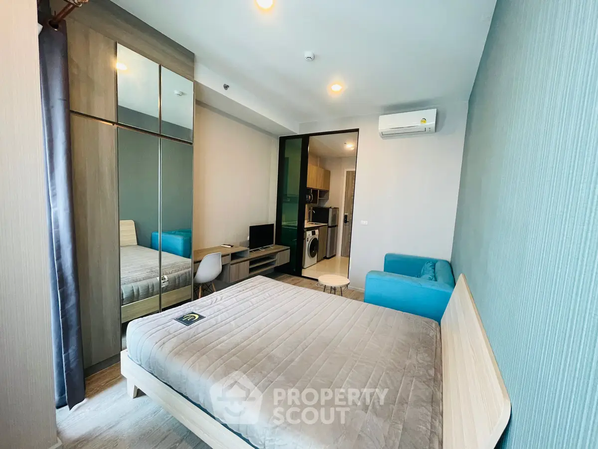 Fully furnished studio, 1 bathroom condo for rent with a floorsize of 33 squaremeters, located on the 21st floor, at KnightsBridge Collage Ramkhamhaeng building, in the popular Bang Kapi district. Please contact us to schedule a viewing.