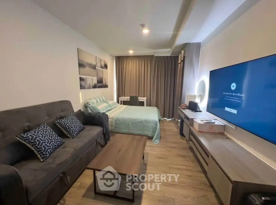 Fully furnished studio, 1 bathroom condo for rent with a floorsize of 25 squaremeters, located on the 21st floor, at Knightsbridge Collage Sukhumvit 107 building near BTS Bearing. Please contact us to schedule a viewing.