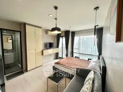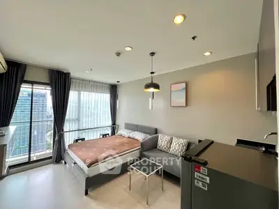 Fully furnished studio, 1 bathroom condo for rent with a floorsize of 22 squaremeters, located on the 34 floor, at Rhythm Asoke building, in the popular Ratchathewi district near MRT Phra Ram 9 and near ARL Makkasan. Please contact us to schedule a viewing.
