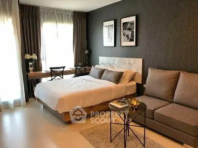 Fully furnished studio, 1 bathroom condo for rent with a floorsize of 24 squaremeters, located on the 11th floor, at Rhythm Sukhumvit 36-38 building, in the popular Khlong Toei district near BTS Thong Lor. Please contact us to schedule a viewing.