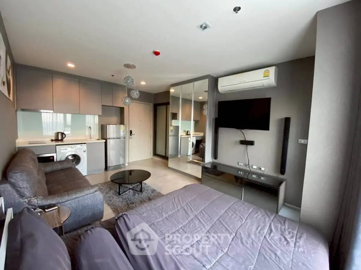 Fully furnished studio, 1 bathroom condo for sale with a floorsize of 24.13 squaremeters, at Rhythm Sukhumvit 36-38 building, in the popular Khlong Toei district near BTS Thong Lor. Please contact us to schedule a viewing.